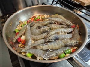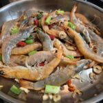 Gamba’s met knoflook, rode peper en lenteuitjes