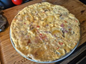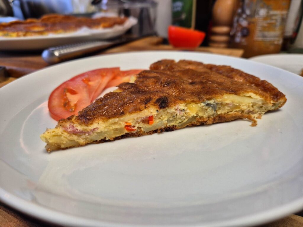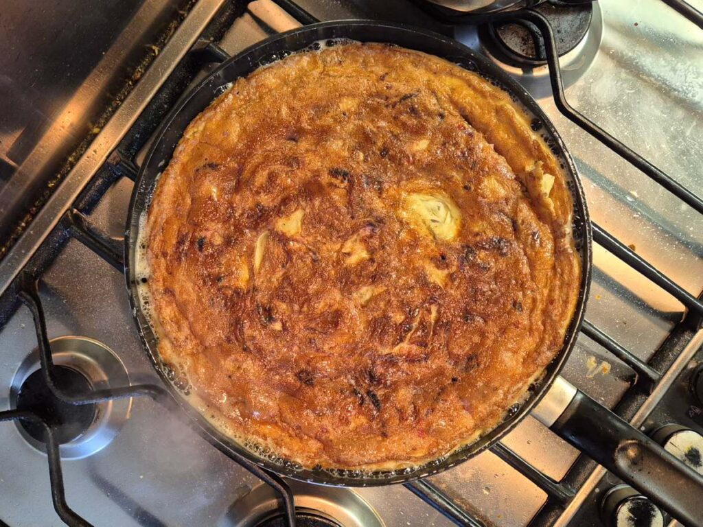 Laten we dit meteen uit de weg ruimen. Dit is geen orthodoxe tortilla española. Hier zit ui in. Kaas ook. En ja, zelfs ham. Als je nu al je wenkbrauwen fronst en overweegt dit tabblad te sluiten: prima. Dit gerecht is niet op zoek naar goedkeuring…