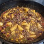 - Aftoppen & pruttelen: Voeg de kidneybonen, maïs en runderbouillon toe. Roer goed door en laat 8 minuten zachtjes pruttelen met de deksel op de pan, tot de aardappels gaar zijn.